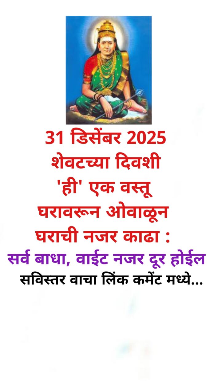 Homeअध्यात्म31 डिसेंबर 2025 शेवटच्या दिवशी एक वस्तू घरावरून ओवाळून घराची नजर काढा...