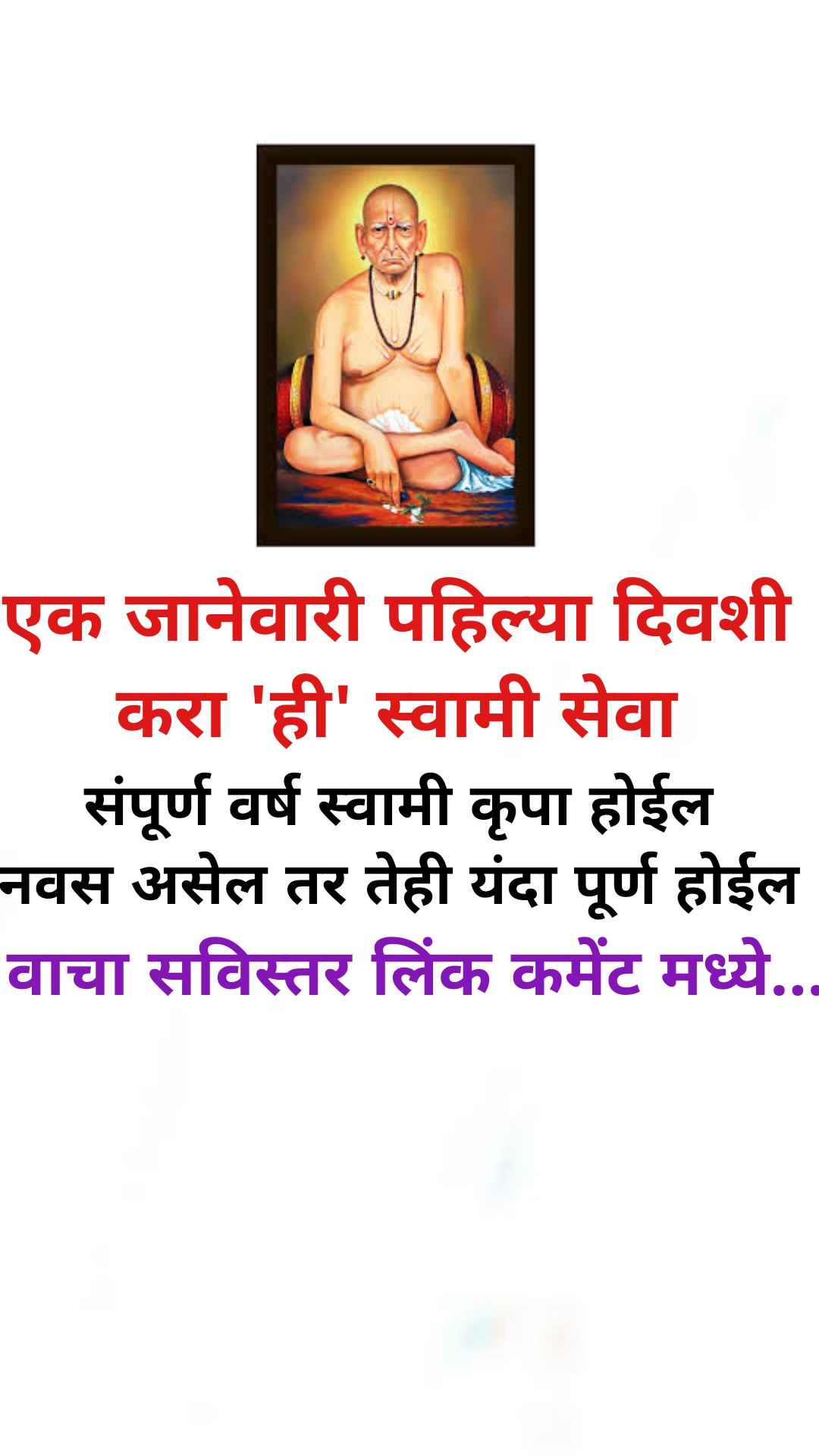 मित्रांनो उद्या एक जानेवारी आणि गुरुवार वर्षातील पहिला दिवस आणि पहिला गुरुवार या दिवशी करा ही विशेष सेवा यामुळे नक्कीच तुम्हाला संपूर्ण वर्षभर स्वामींची कृपा होऊन आपले असणारे अनेक नवस किंवा रखडलेली कामे पूर्ण होतील मार्गी लागतील, कर्ज loan असेल तर फिटून जाईल. इन्शुरन्स insurance चे पैसे वगैरे येणार असतील तर ते येतील. Automobile क्षेत्रात काम करत असल्यास भरपूर येईल.