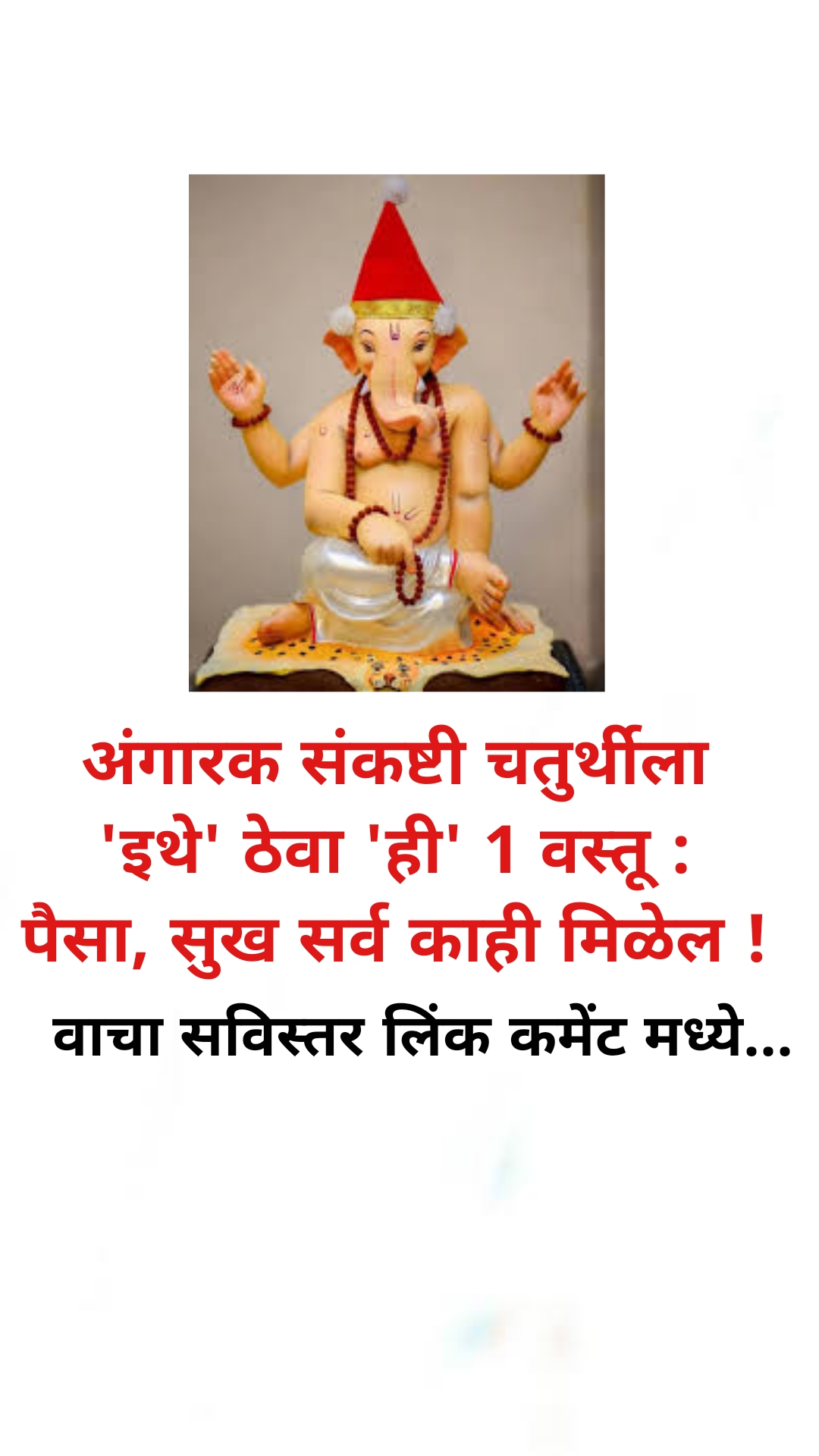 मित्र-मैत्रिणींनो उद्याच्या अंगारकी संकष्टी ला इथे ठेवा ही एक वस्तू त्यामुळे आपणाला पैसा सुख अशा सर्व काही वस्तू तात्काळ मिळू लागतील. तुम्हाला तुमचे यश अगदी लवकरात लवकर मिळेल तुमच्या इच्छा तात्काळ पूर्ण होऊ लागतील.