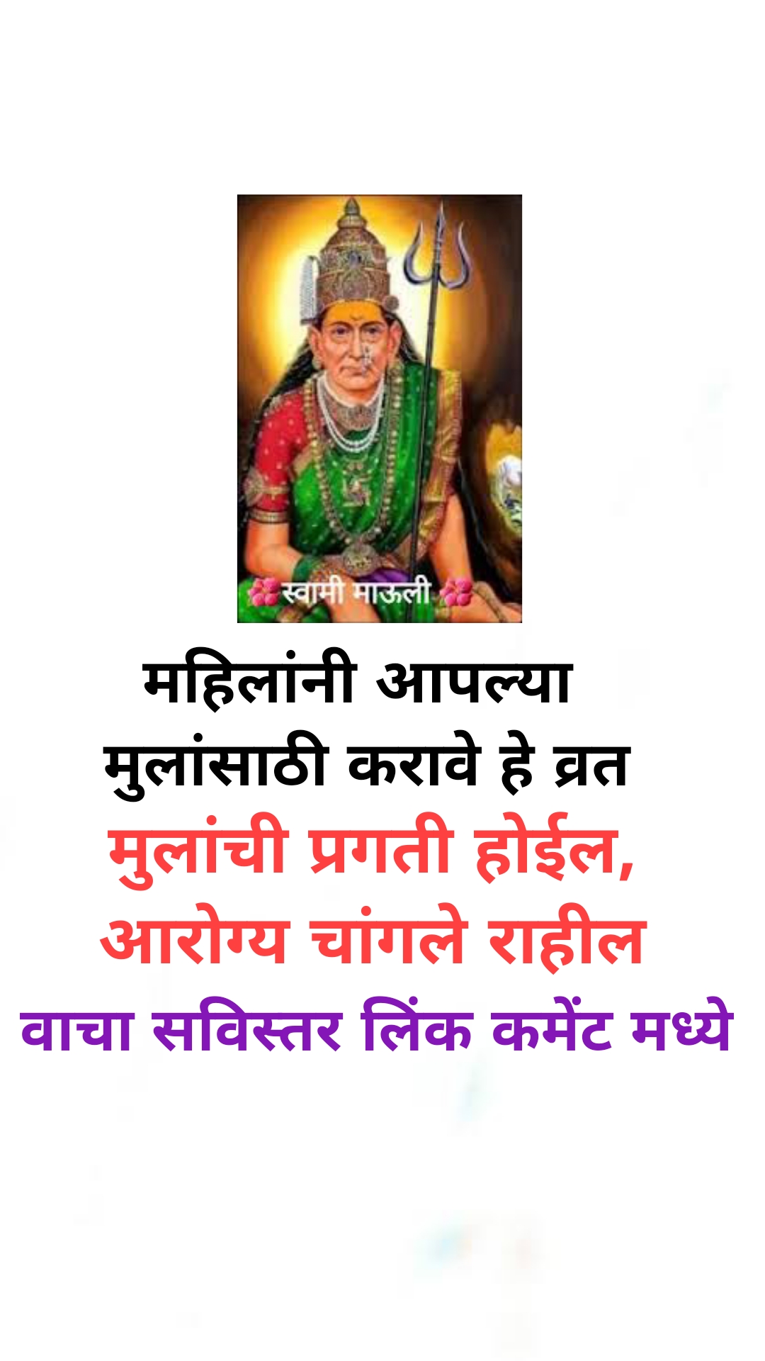 मित्र- मैत्रिणींनो महिलांनी त्यांच्या मुलांसाठी करावी हे एक व्रत हे व्रत खूप चमत्कारी आहे. तुमच्या इच्छा पूर्ण करणारे व्रत आहे. हे व्रत तुमच्या मुलांसाठी खूप लाभदायक आहे. स्वामींच्या कृपेने तुमच्या मुलाबाळांचे आरोग्य चांगले राहील त्यांची प्रगती होईल.