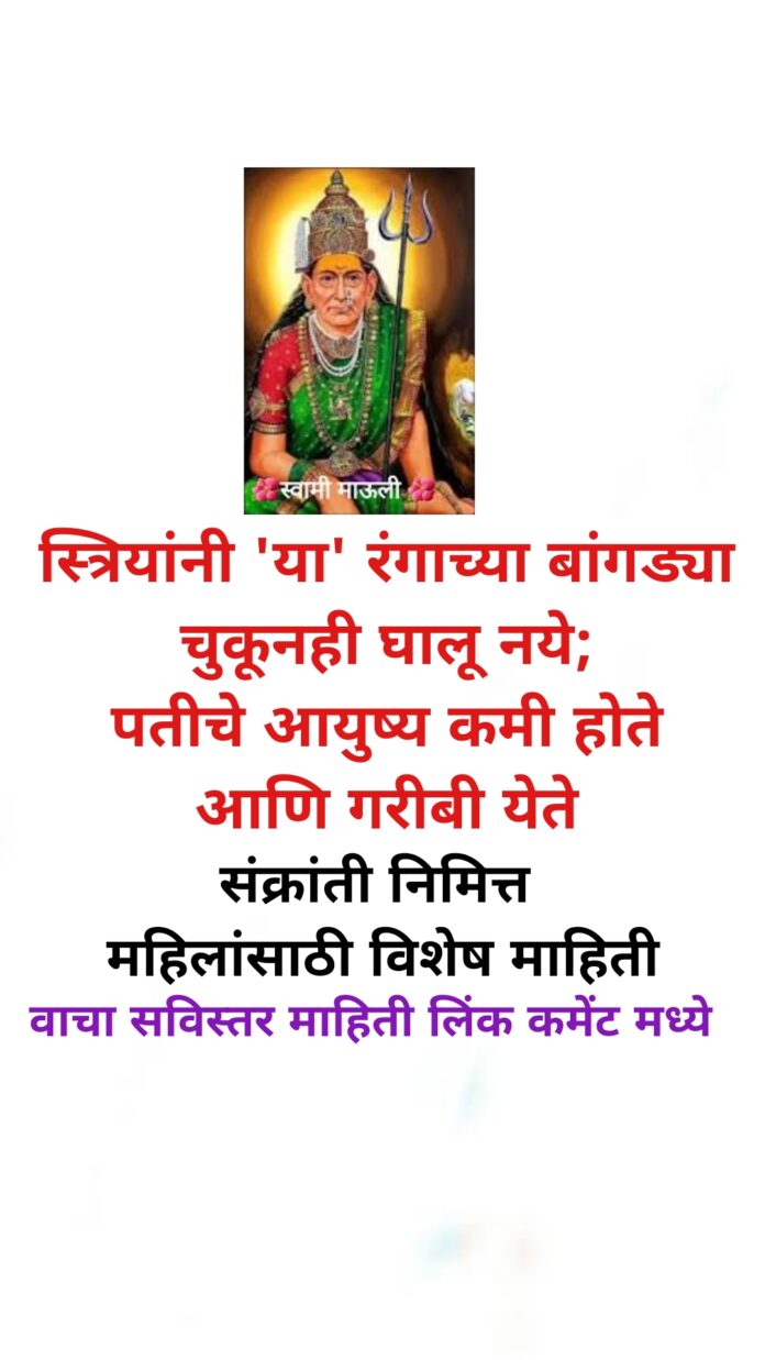 मित्रांनो विवाहित महिलांनी ‘या’ रंगाच्या बांगड्या चुकूनही घालू नये, पतीचे आयुष्य कमी होते आणि गरीबी येते असे आपण ऐकिवात आहोत आणि आख्यायिका अशी सांगितली जाते. तर मित्रांनो संक्रांतीनिमित्त प्रत्येक महिलांनी वाचलीच पाहिजे अशी अत्यंत महत्त्वाची माहिती आज आपण जाणून घेत आहोत.