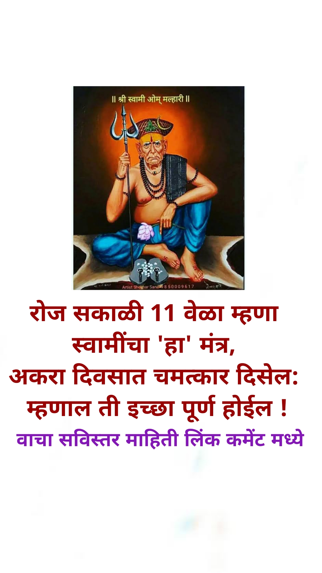 मित्र – मैत्रिणींनो रोज सकाळी अकरा वेळा म्हणा स्वामींचा हा मंत्र तुम्हाला 11 दिवसात चांगला चमत्कार दिसून येईल. मित्र – मैत्रिणींनो आपण सर्वांनी रोज सकाळी अकरा वेळा स्वामींचा हा मंत्र म्हटला तर आपणाला नक्कीच पुढील अकरा दिवसात सकारात्मक चमत्कार दिसून येईल.