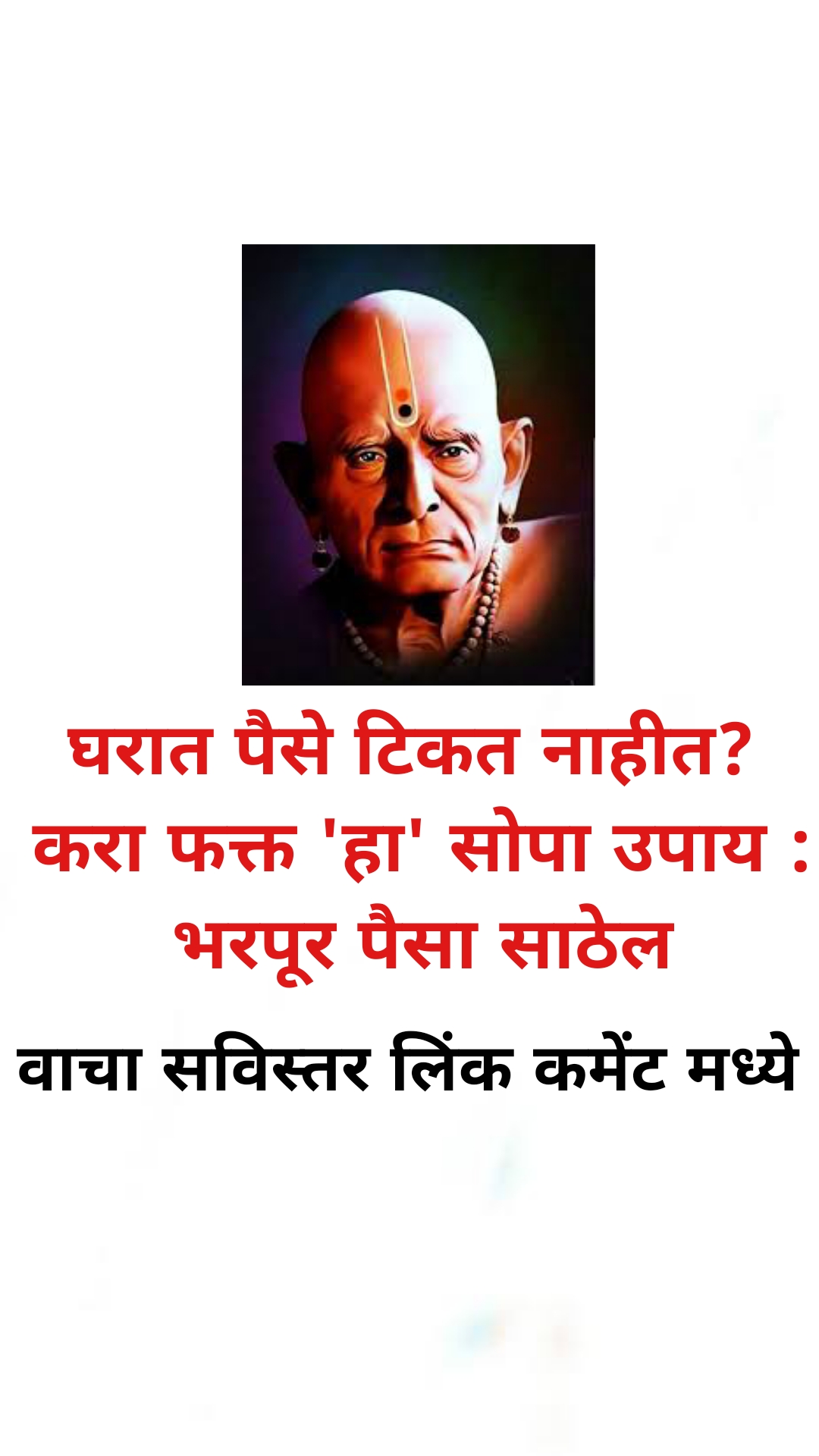मित्रांनो, घरातून कामानिमित्त बाहेर पडताना शर्टाच्या वरच्या खिशामध्ये थोडेतरी पैसे ठेवावेत. रिकाम्या खिशाने कधीही घराबाहेर पडू नये कारण पैसा पैशाकडे चालतो येतो. हे शाश्वत सत्य आहे.