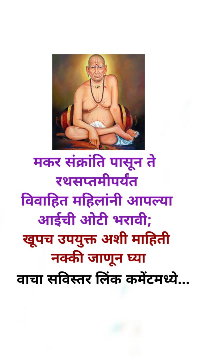 जर तुम्ही देवीची ओटी भरत असाल तर ओटी भरून झाल्यानंतर ओटी भरलेले साहित्य आहे ते साहित्य ज्या महिलेने ओटी भरलेली आहे त्या महिलेने घ्यायचे आहे. आणि जर तुम्ही आपल्या आईची ओटी भरली असेल तर ओटीचे साहित्य आई पाशी ठेवायचे आहे म्हणजेच आईने ते वापरायचे आहे. तर मित्रांनो मकर संक्रांतीपासून ते रथसप्तमीपर्यंत तुम्ही कोणत्याही एका दिवशी आपल्या आईची ओटी अवश्य भरा. जेणेकरून तुम्हाला तुमच्या आयुष्यात कोणत्याही प्रकारच्या अडचणी येणार नाहीत. तुमचे घर कायम आनंदात राहील.