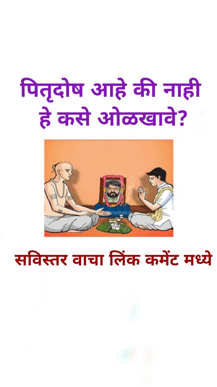 तर मित्रांनो, ही काही कारणे आहेत की जे पितृदोष असण्याचे संकेत देत असतात या कारणांवरून तुम्ही माहिती करून घेऊ शकाल की तुम्हाला पितृदोष आहे किंवा नाही.