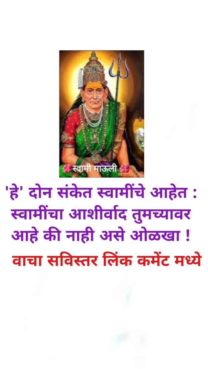 असे जे जे लोक करतात त्यांची सर्व कामे निर्विघ्नपणे पूर्ण होता. ज्या लोकांच्या आयुष्यामध्ये हे संकेत देतात. त्यांनी स्वतःला खूपच नशिबवान समजावे. व स्वामी समर्थ महाराज आपल्या बरोबर असल्याचे समाधान देखील मानावे हे सुख सर्वांच्याच वाटेला येते असे नाही.जे निस्वार्थपणे स्वामी समर्थ महाराजांची सेवा करतात. व त्यांच्यावर विश्वास ठेवतात त्यांच्या बाबतीत हे सर्व घडते.