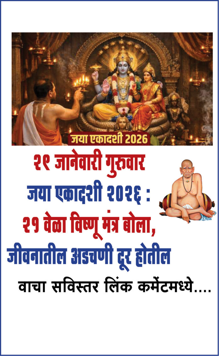 थोडक्यात, 29 जानेवारी गुरुवार – जया एकादशी 2026 या दिवशी फक्त 21 वेळा विष्णू मंत्राचा जप केल्यास जीवनातील तणाव कमी होतो, आरोग्य सुधारते आणि आर्थिक अडचणींवर मात करण्याची शक्ती मिळते. श्रद्धेने केलेली साधना कधीही वाया जात नाही.